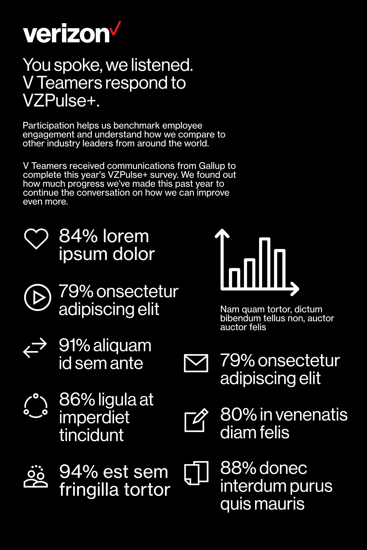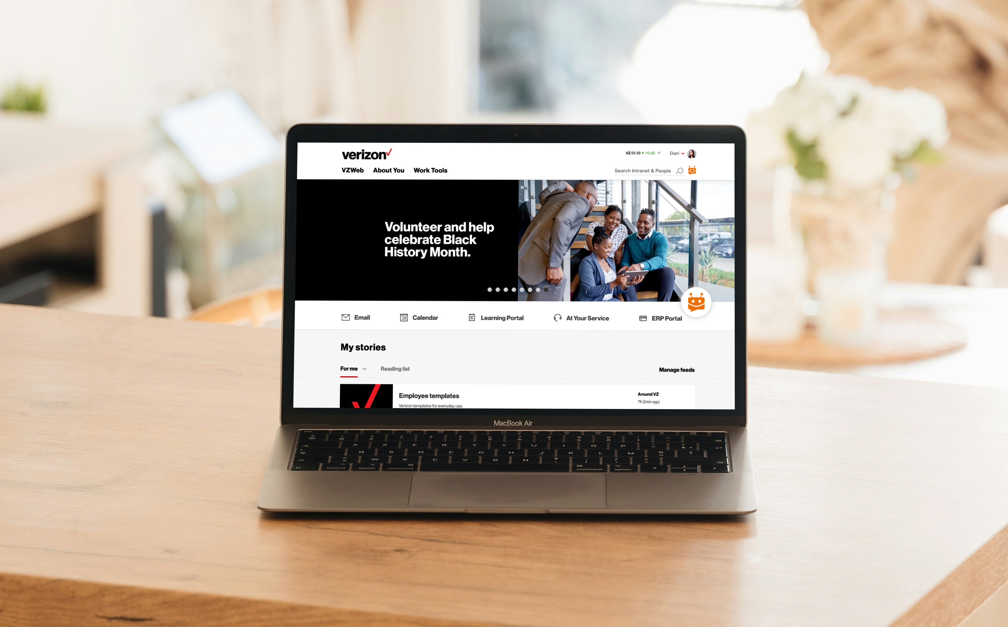 VZWeb is the central Verizon corporate intranet resource portal that hosts resources for employees. The rotating banners promote articles written by Corporate and Employee Communications, as well as Human Resources Communications. This shared digital space hosts banners on a coordinated schedule based on the current communication strategy timeline. Human Resources Communications utilizes this space for greater visibility for their own editorial team's content.